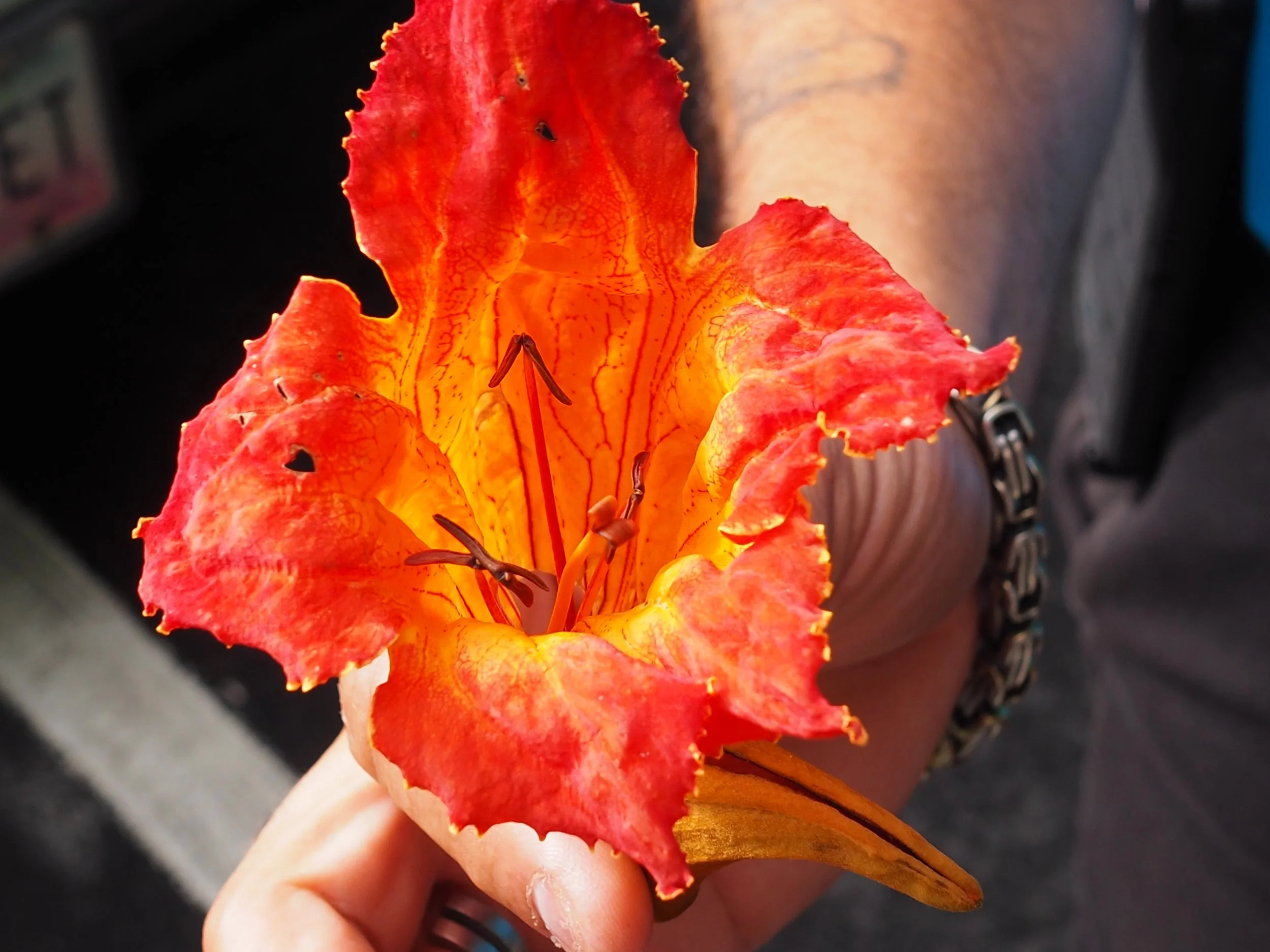 La Coca Falls is a peaceful viewing stop along the main road where nature meets the traveler. Our driver and guide is showing the African Tulip most commonly found on the island’s rainforest which flourishes on the tree tops. The vibrant color some say represents power, beauty and boldness. Between two trees sits the iconic monobloc chair overlooking the beauty of Puerto Rico. In many cultures this type of chair represents multi-generational social gatherings of community, but here a place of rest to enjoy the view. While enjoying the view, drinking tamarind juice and conversing with locals, you feel the spirit and love of Puerto Ricans.